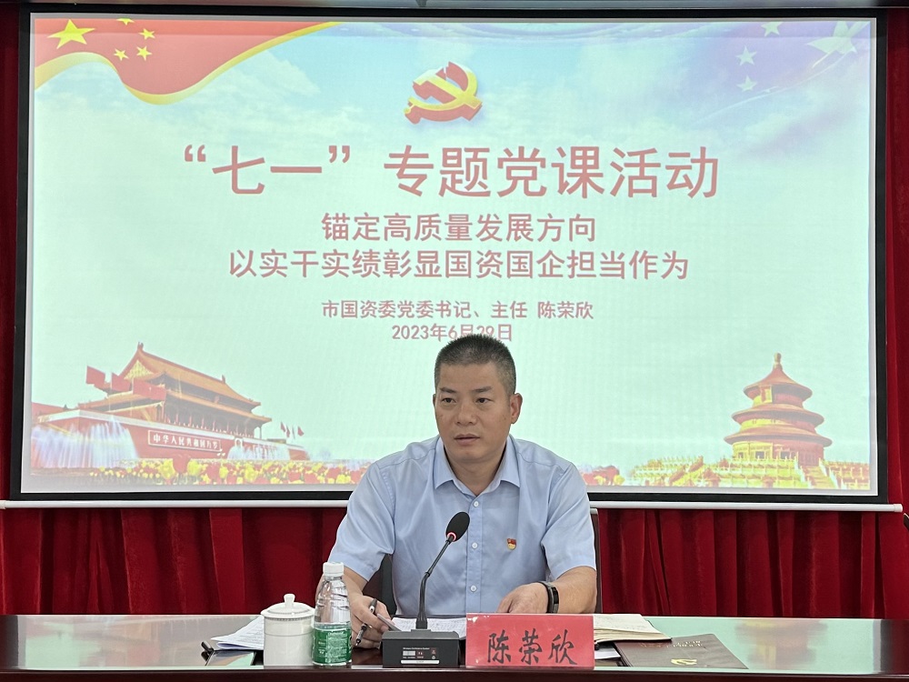 為慶祝中國共產(chǎn)黨成立102周年,深入學(xué)習(xí)貫徹黨的二十大精神和習(xí)近平總書記視察廣東重要講話、重要指示批示精神,6月29日下午,市國資委黨委書記、主任陳榮欣到市城投集團(tuán)作題為《錨定高質(zhì)量發(fā)展方向 以實干實績彰顯國資國企擔(dān)當(dāng)作為》黨課宣講。市城投集團(tuán)黨委書記、董事長周永貴主持會議。市國資委黨委班子成員、各科室全體黨員,市城投集團(tuán)黨委領(lǐng)導(dǎo)班子、黨員干部職工參加會議。